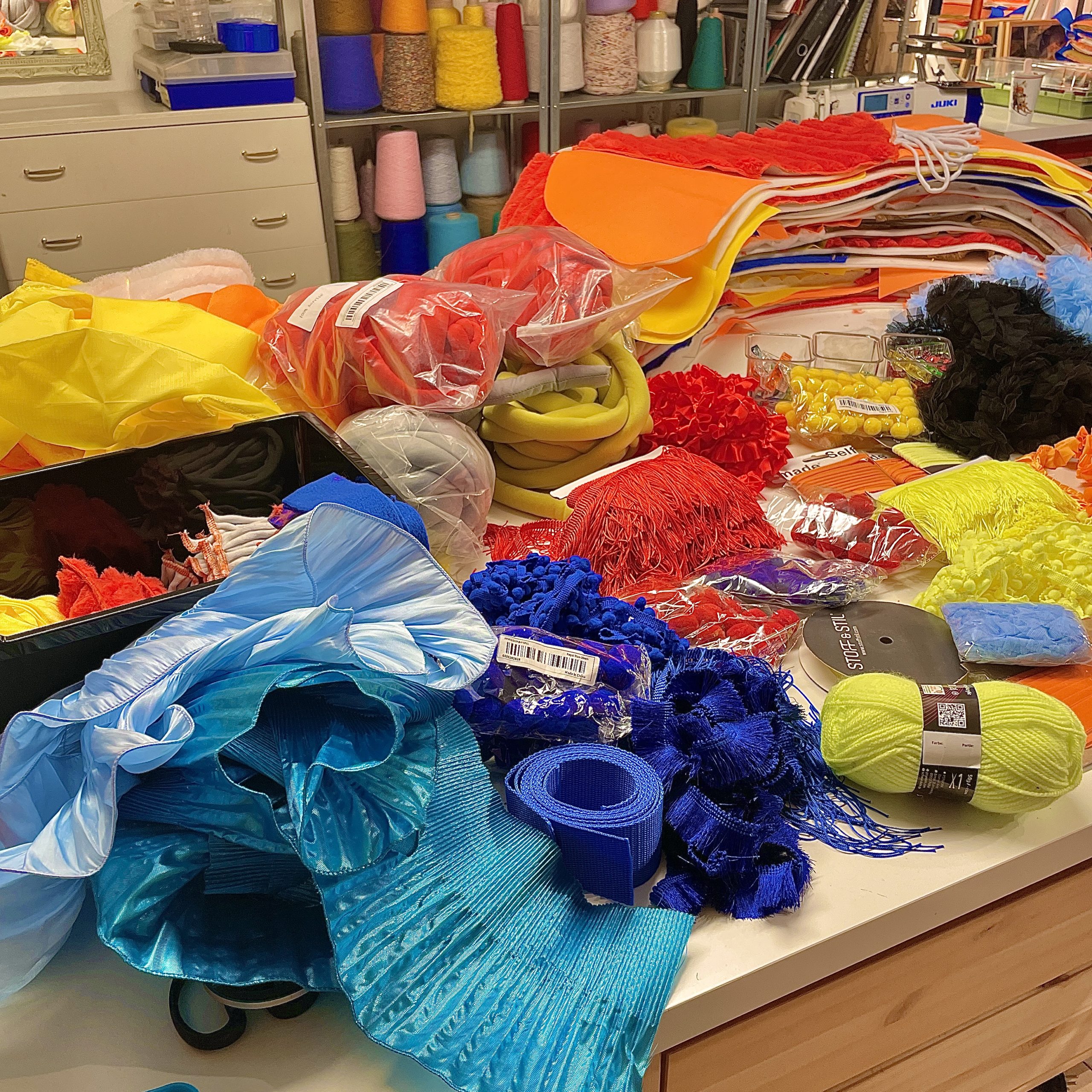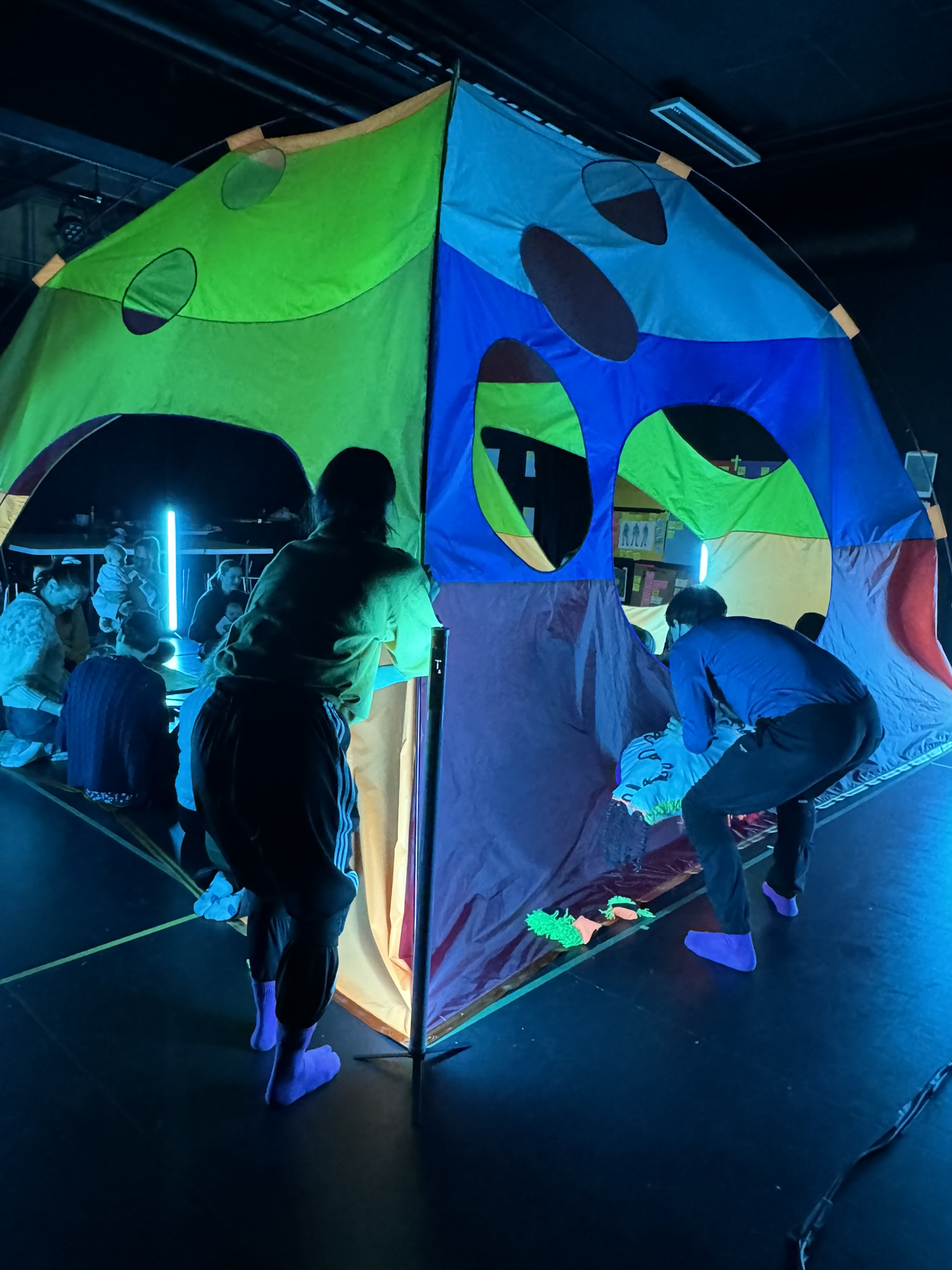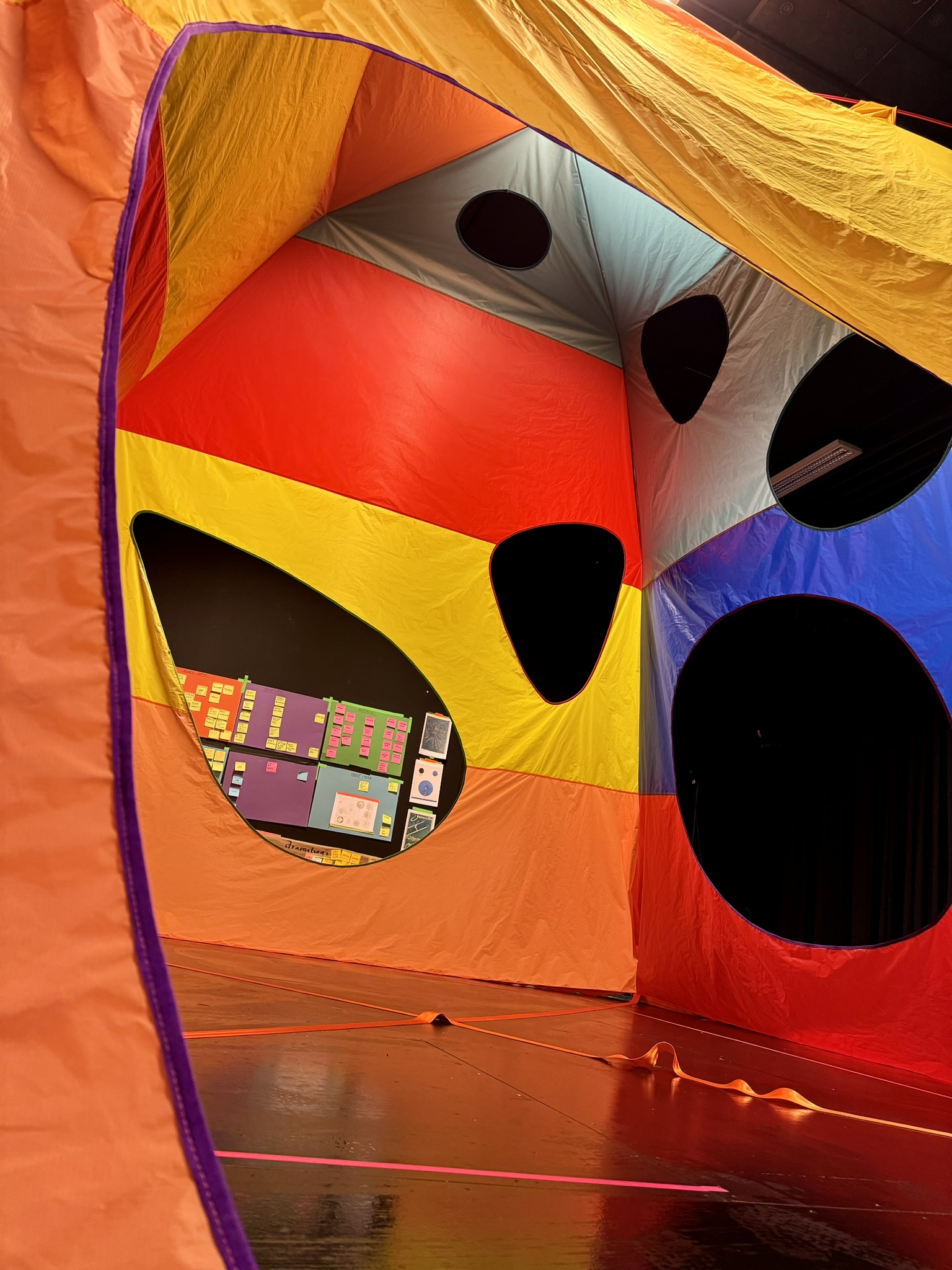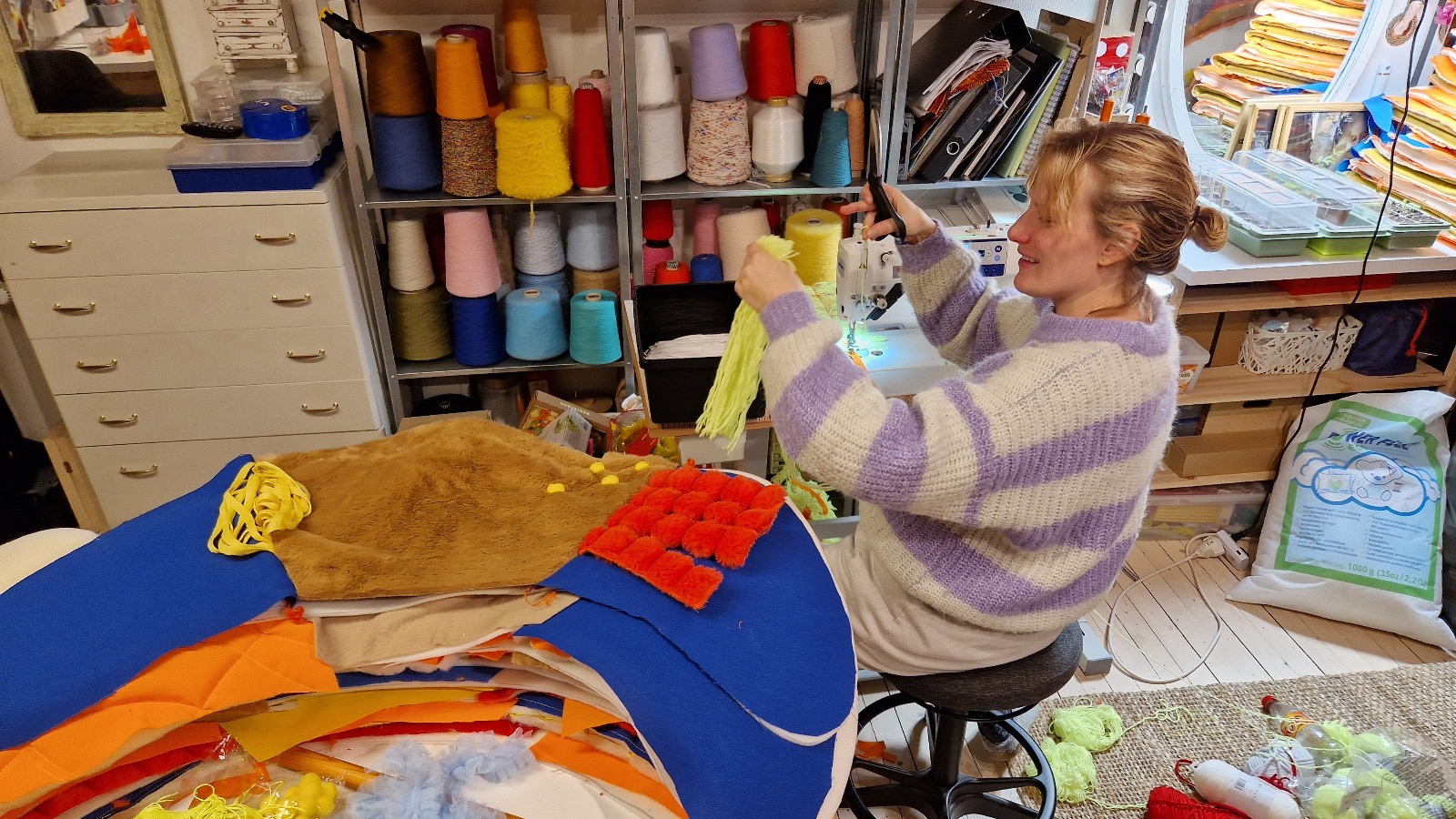 Vi er nå på Unge Viken Teater i Lillestrøm. Julia er kostyme- og putedesigner på den nye babyforestillingen Unison Puls. I dag er det prøvevisning, og Julia har med seg de siste to putene som skal inn i teltet på scenen. Og masse, masse fôring. Men det skal vi snakke om senere, for nå kommer det enda en IKEA-bag inn døren. Denne gangen er det scenograf Kyrre som henger på.