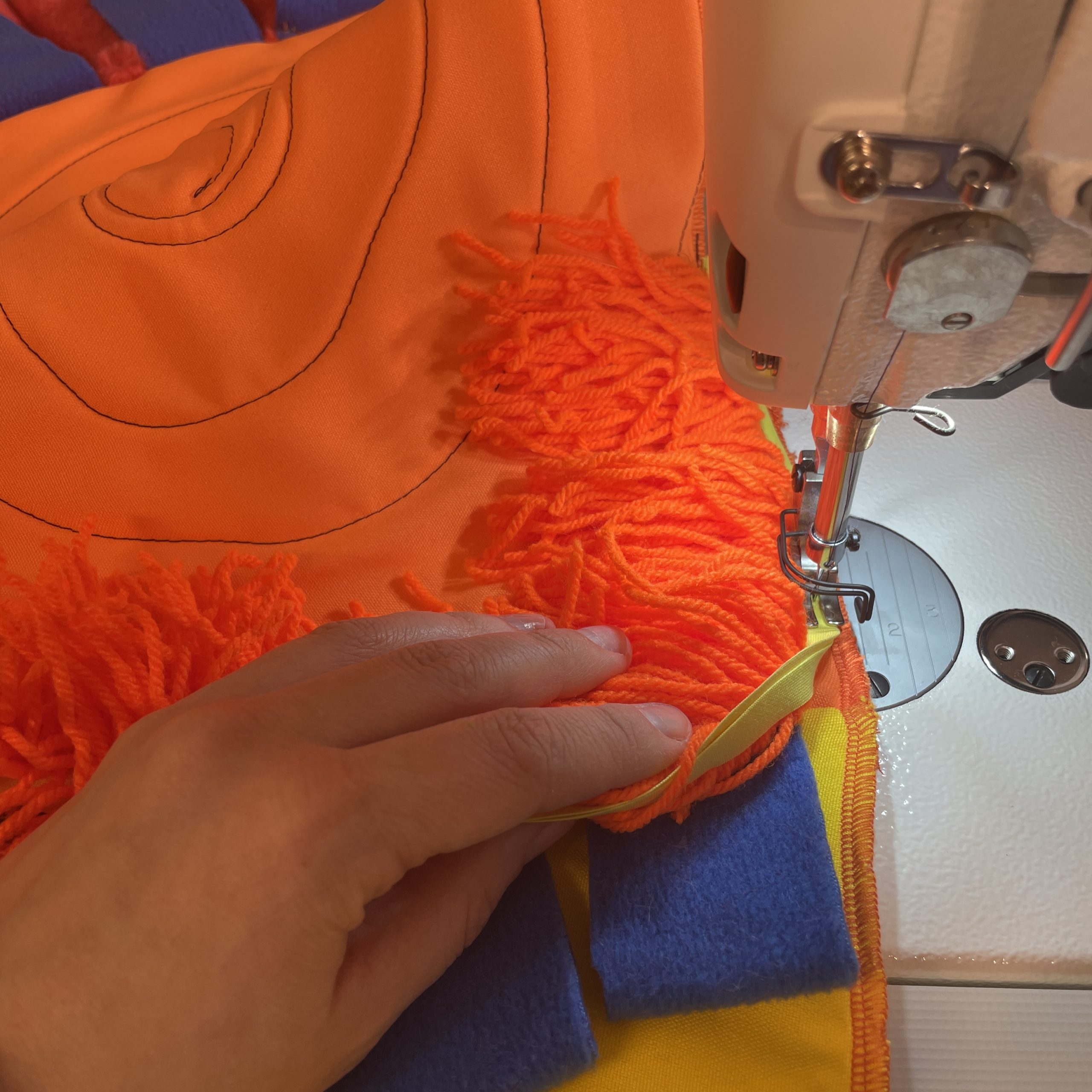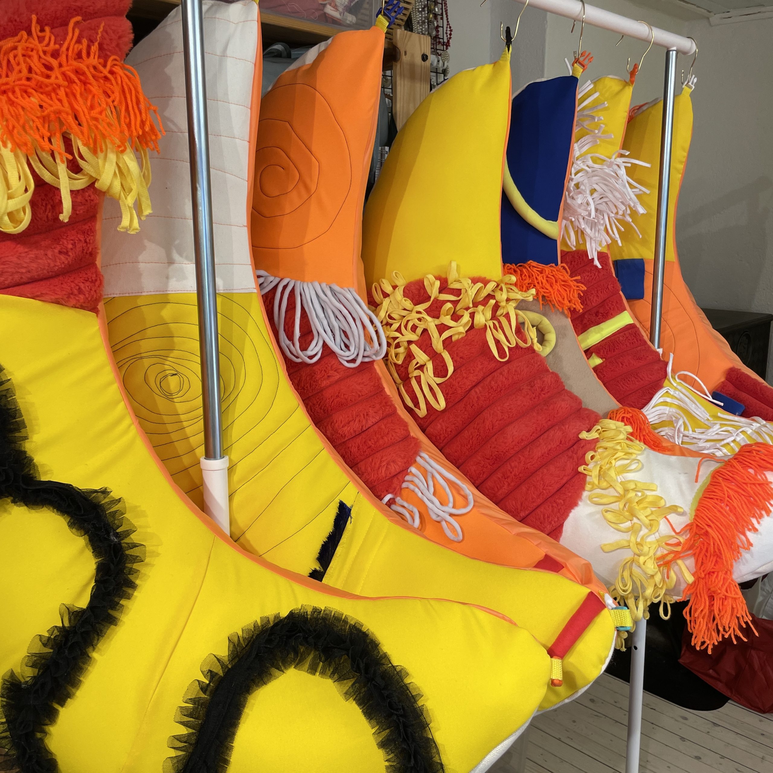 – Jeg jobbet på en forestilling på Vega Scene der vi lagde en stor bjørn til scenen, og den trengte mye fyll. Da brukte vi nesten alt produksjonsavfallet vårt til det. Den ble fryktelig tung! Og nå bruker jeg det samme fôret igjen i Unison puls og en forestilling til.